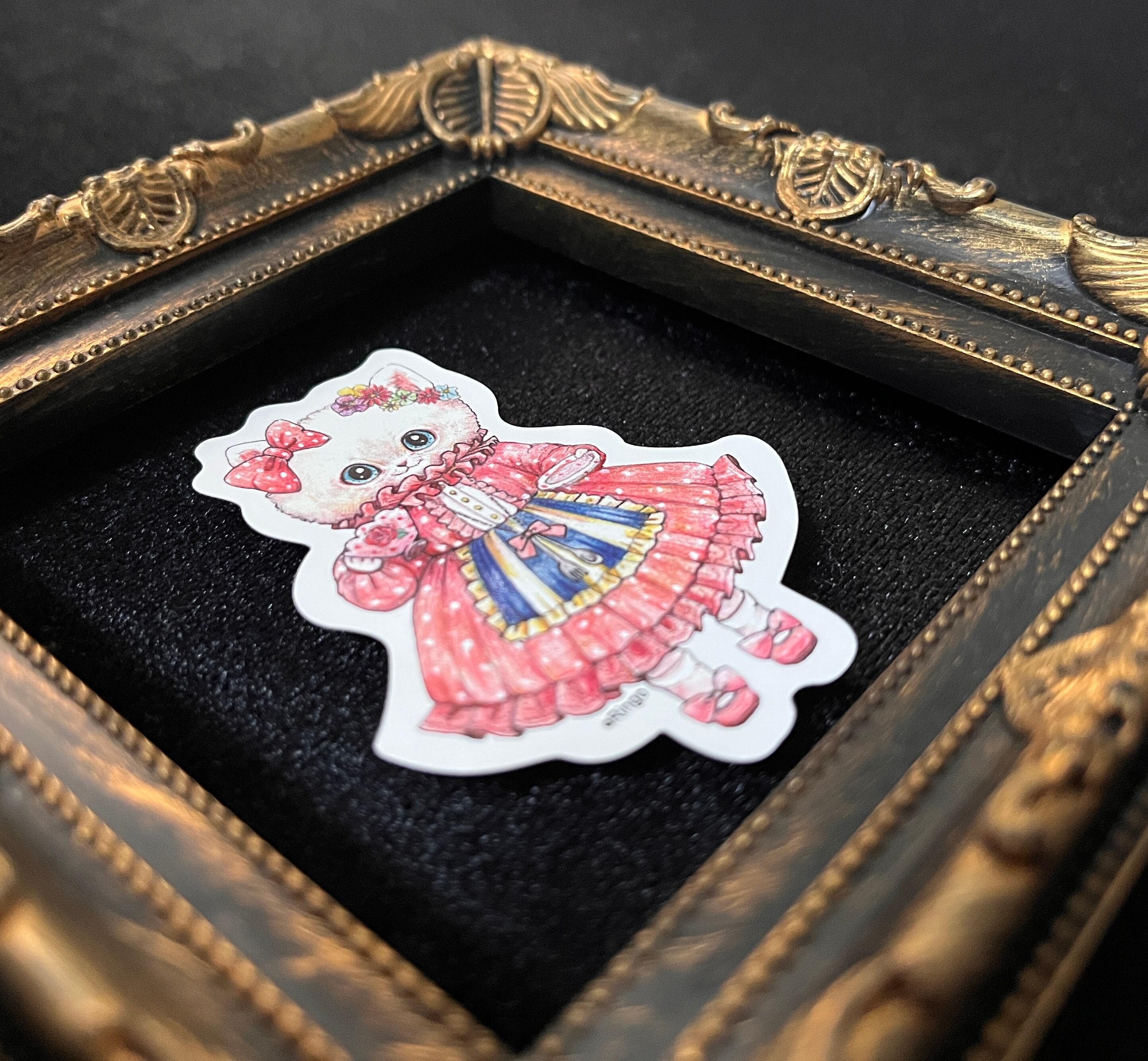 ミニホワイトステッカー アンナちゃん 「こねこのお茶会」