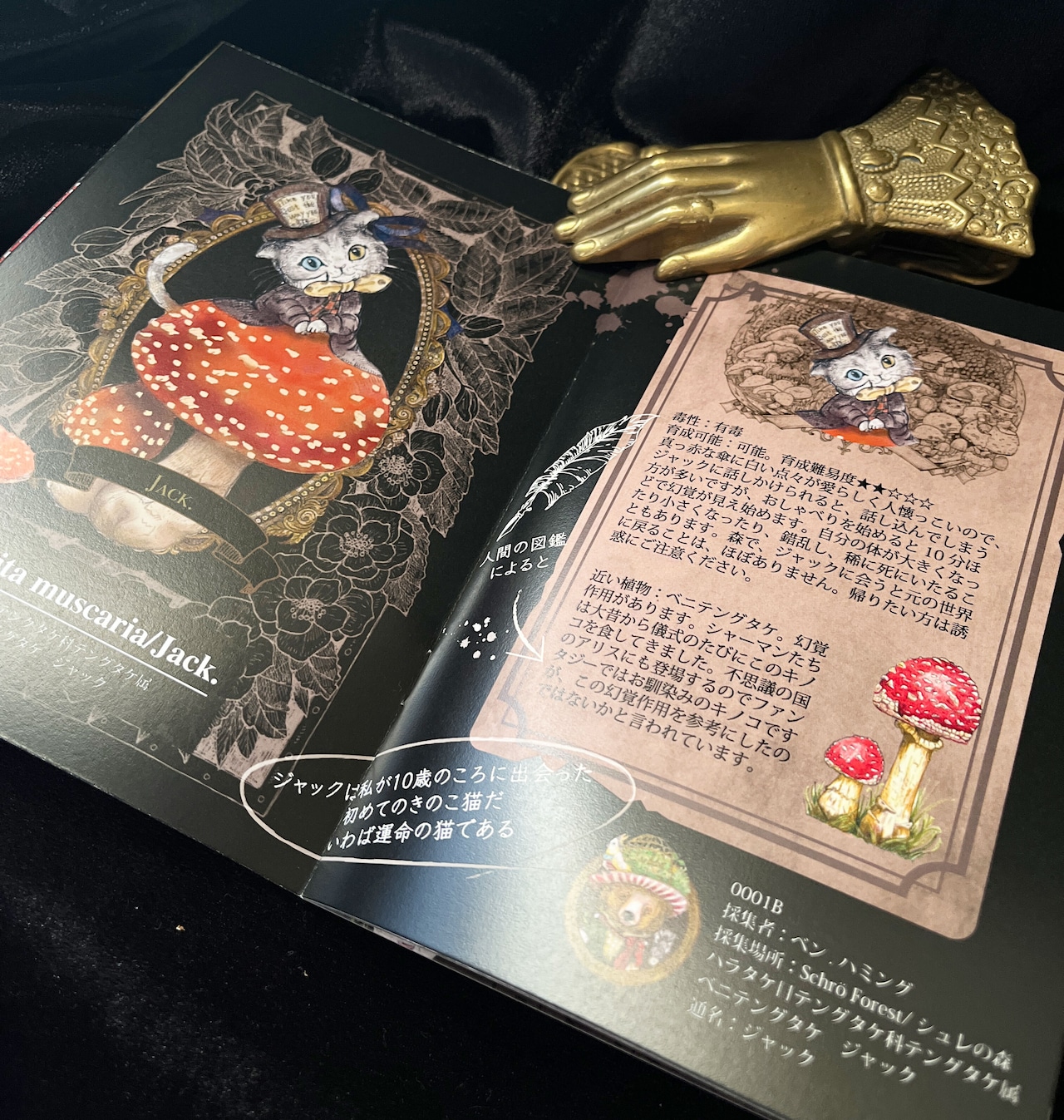 ”お前さんがもし、きのこ猫の生態を詳しく知りたいのなら、あたしのおすすめを教えてあげよう。これは『ポイズンガーデン、毒の庭』の図鑑さ。一家に1つは置いとくんだね。”